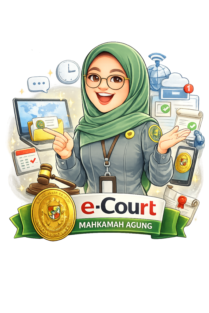 e-Court adalah aplikasi layanan peradilan berbasis elektronik yang disediakan oleh Mahkamah Agung Republik Indonesia untuk memfasilitasi pendaftaran perkara secara daring, pembayaran biaya perkara (e-Payment), pemanggilan para pihak secara elektronik (e-Summons), serta persidangan elektronik (e-Litigation), guna mewujudkan peradilan yang sederhana, cepat, dan berbiaya ringan.